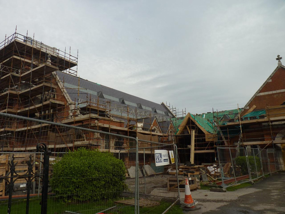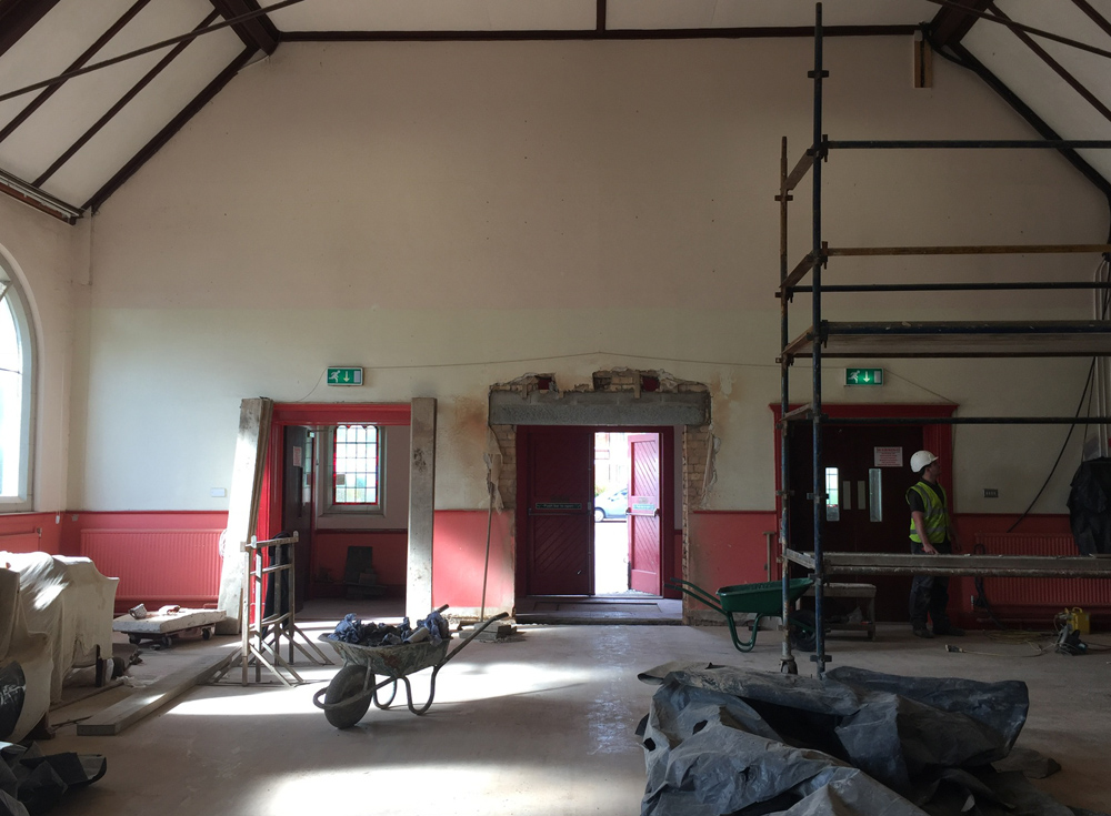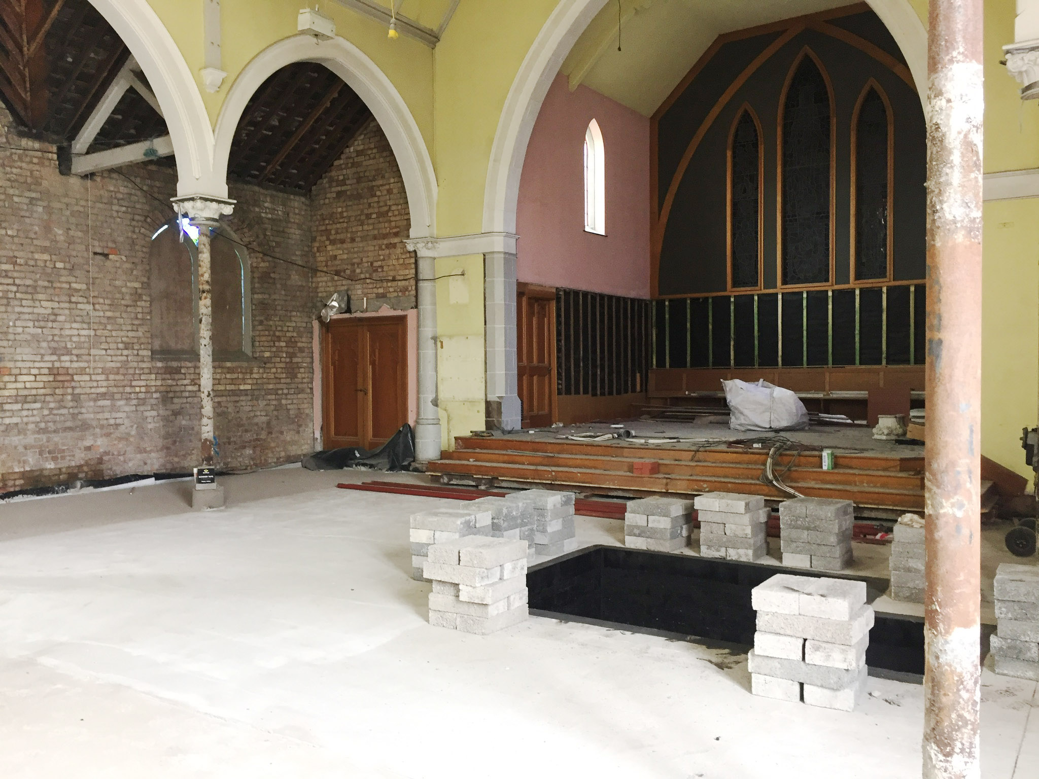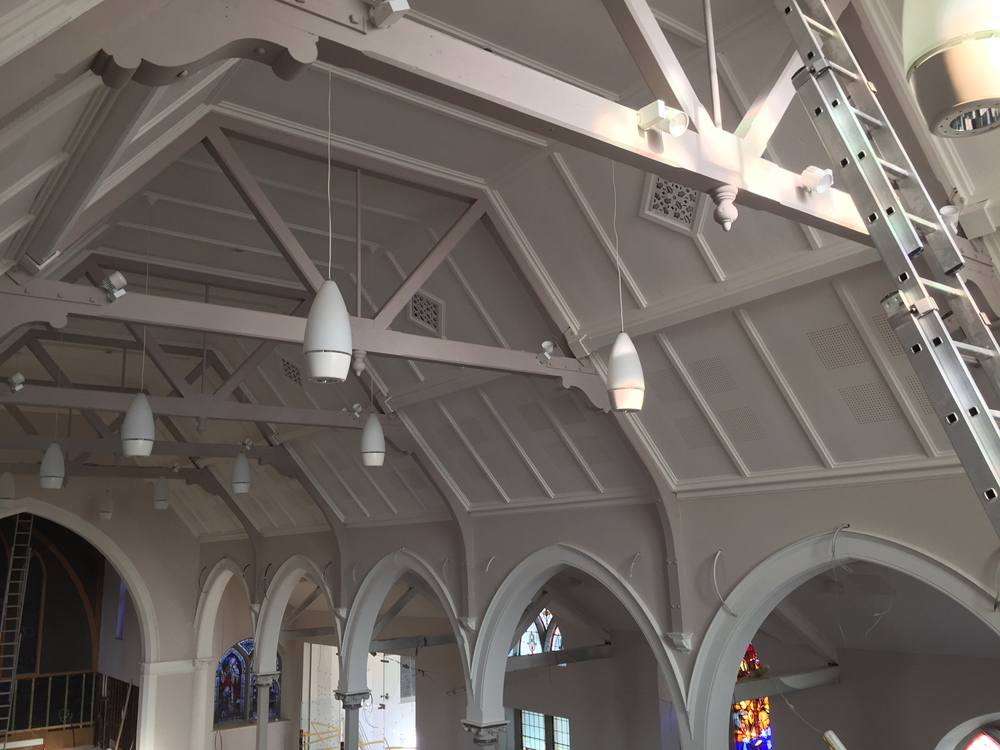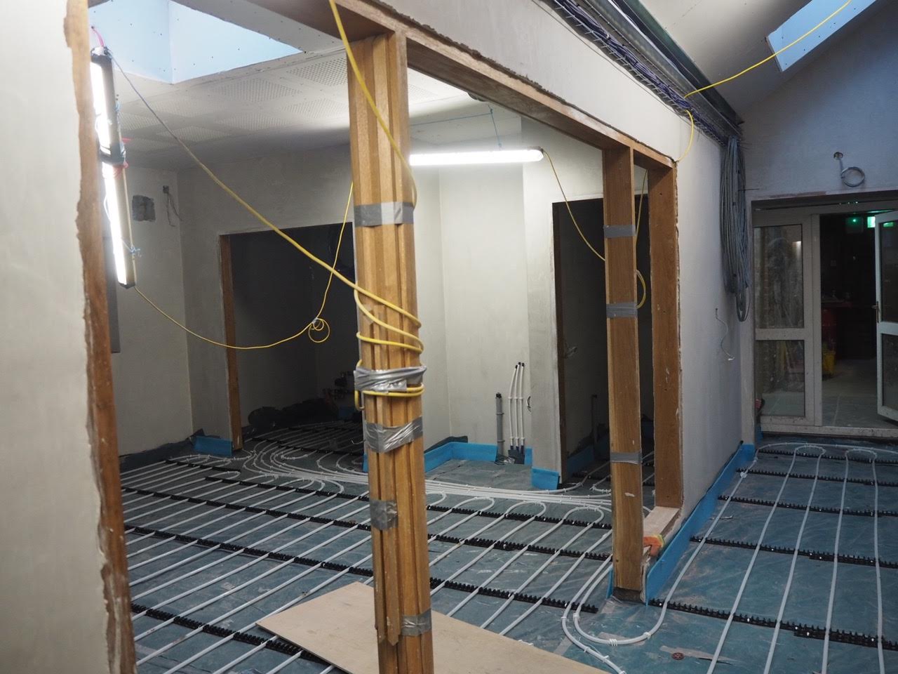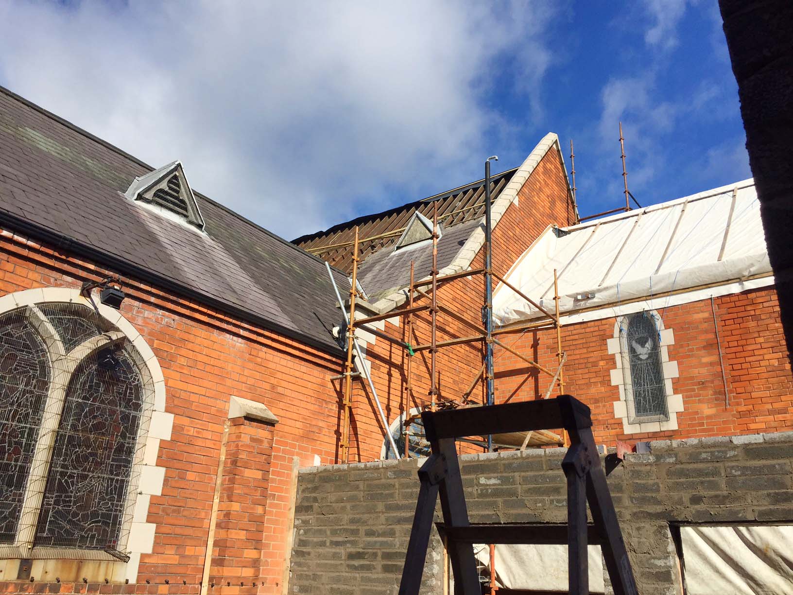 Work on the church building interior is going well. Now that the building has been sealed with the window glass in place in the Welcome Centre and the stained glass windows have been re-installed, including the Millennial Centennial Window, the builders have been able to install the underfloor heating, radiators and electric conduit. The scaffolding is now down to reveal the stunning brickwork. All very exciting now that we can see the end in sight!