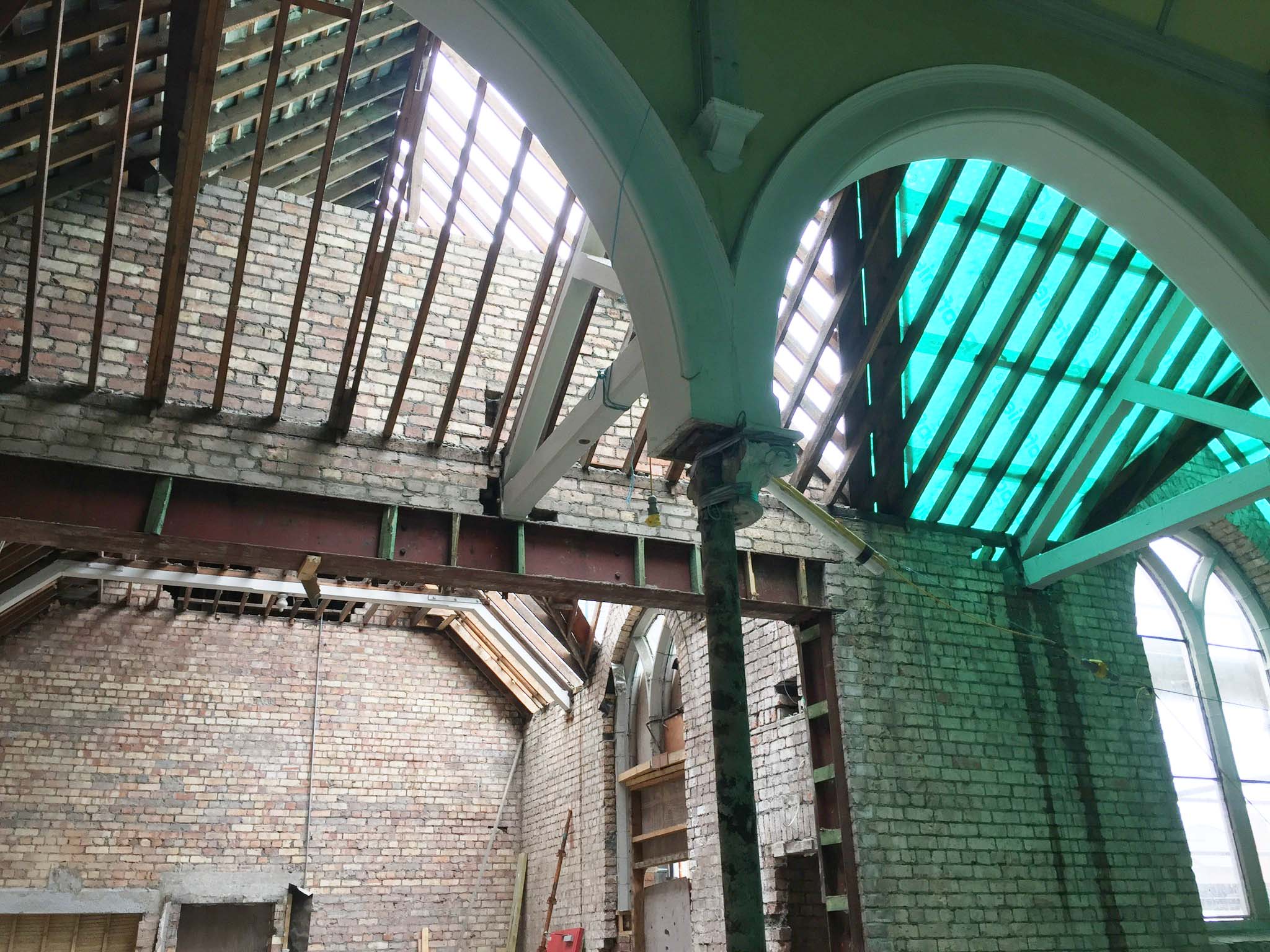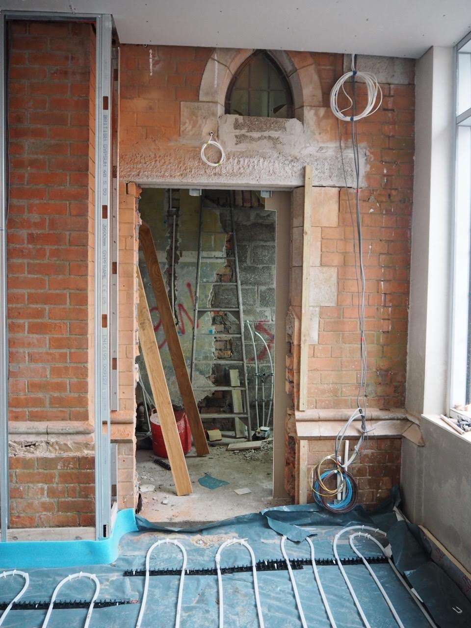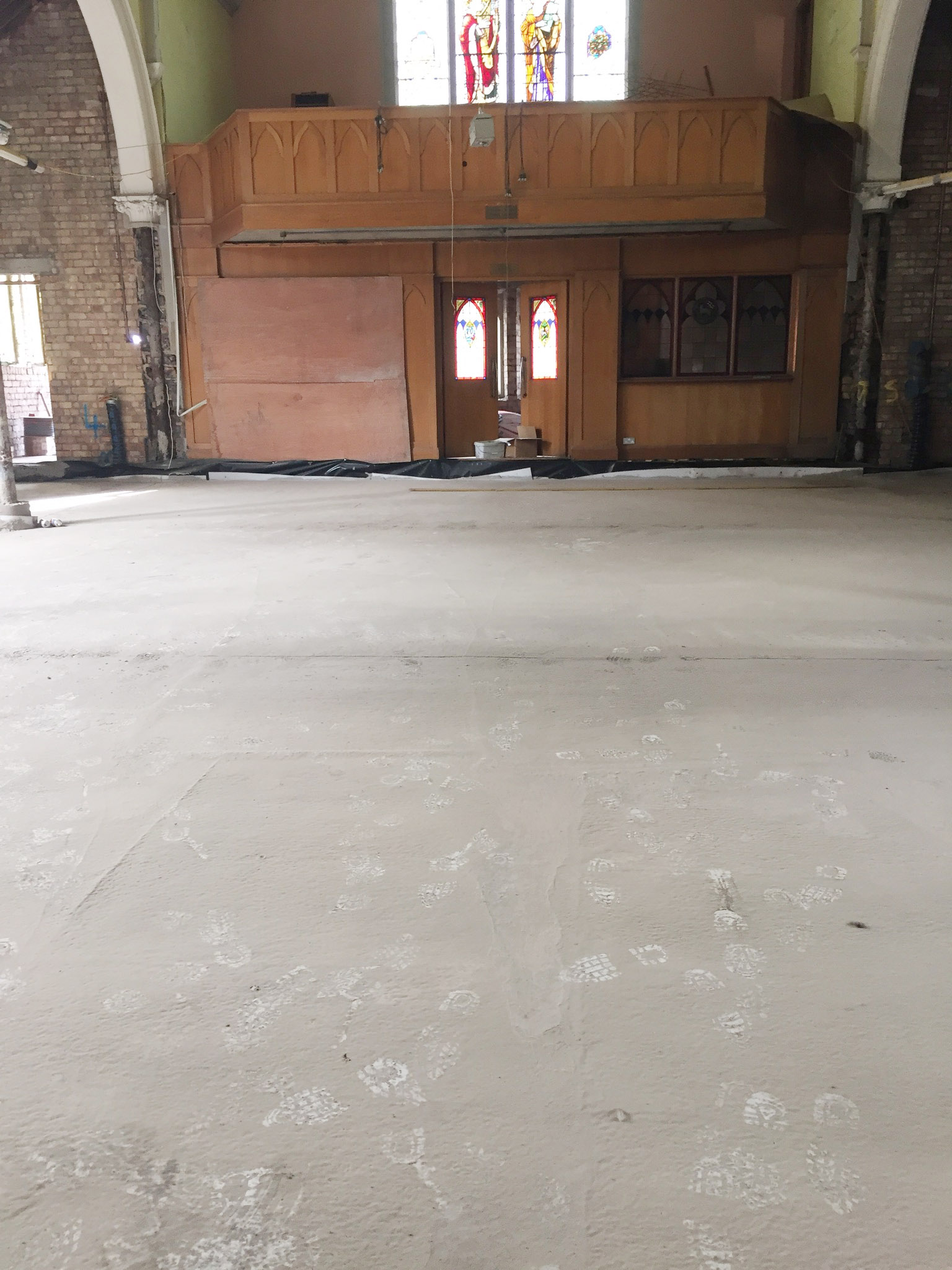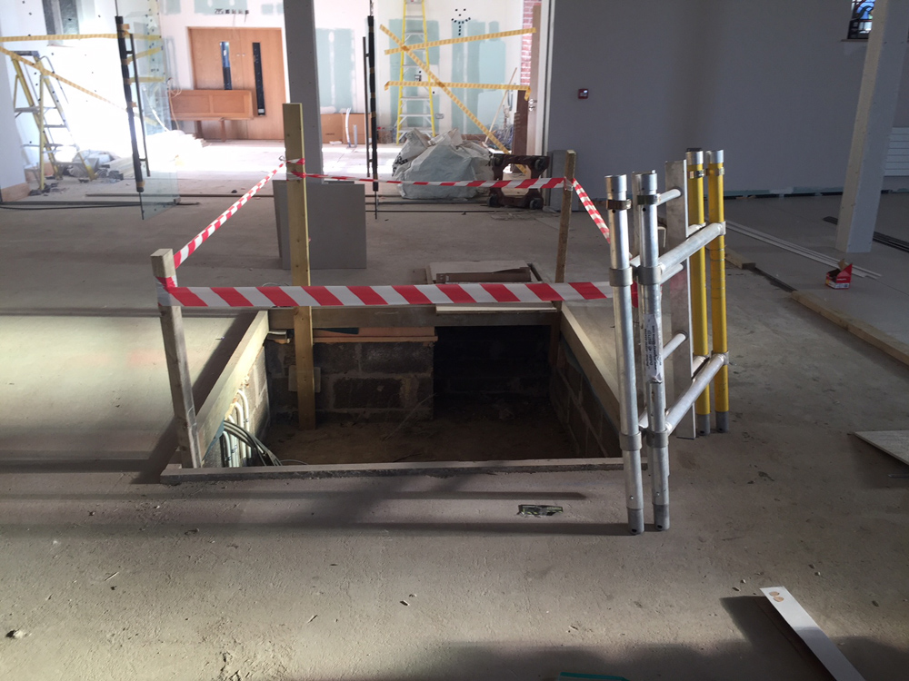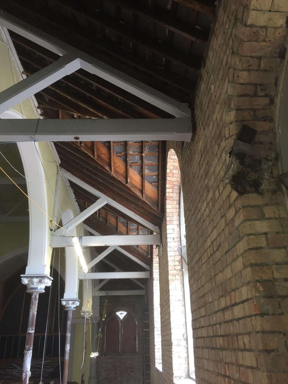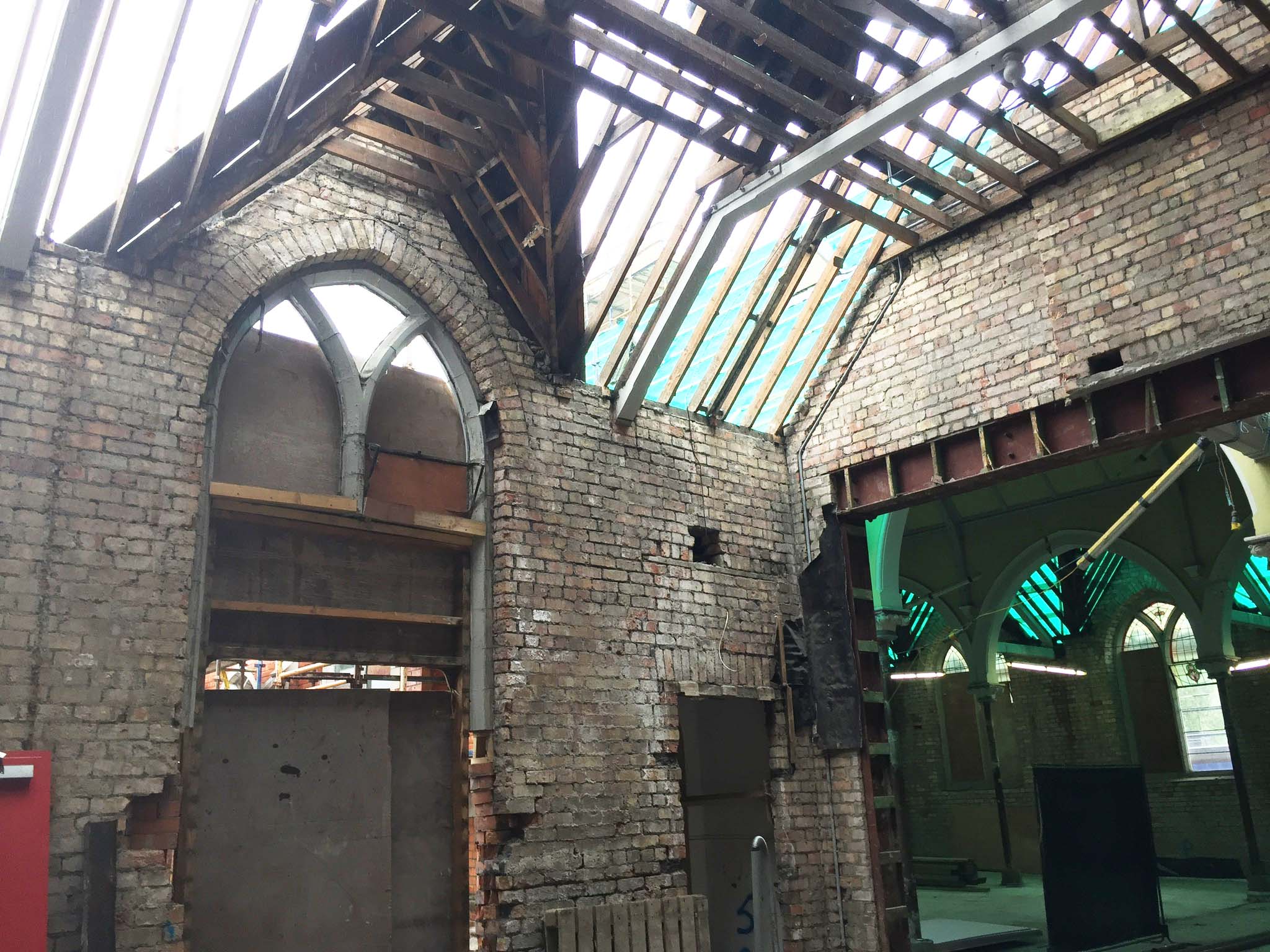 Work on the church building interior is going well. Now that the building has been sealed with the window glass in place in the Welcome Centre and the stained glass windows have been re-installed, including the Millennial Centennial Window, the builders have been able to install the underfloor heating, radiators and electric conduit. The scaffolding is now down to reveal the stunning brickwork. All very exciting now that we can see the end in sight!