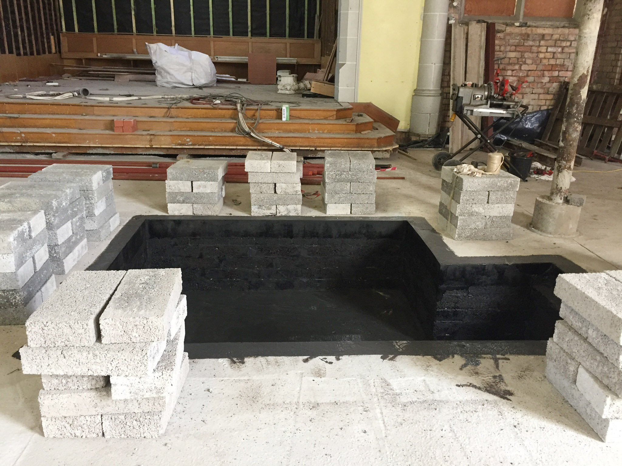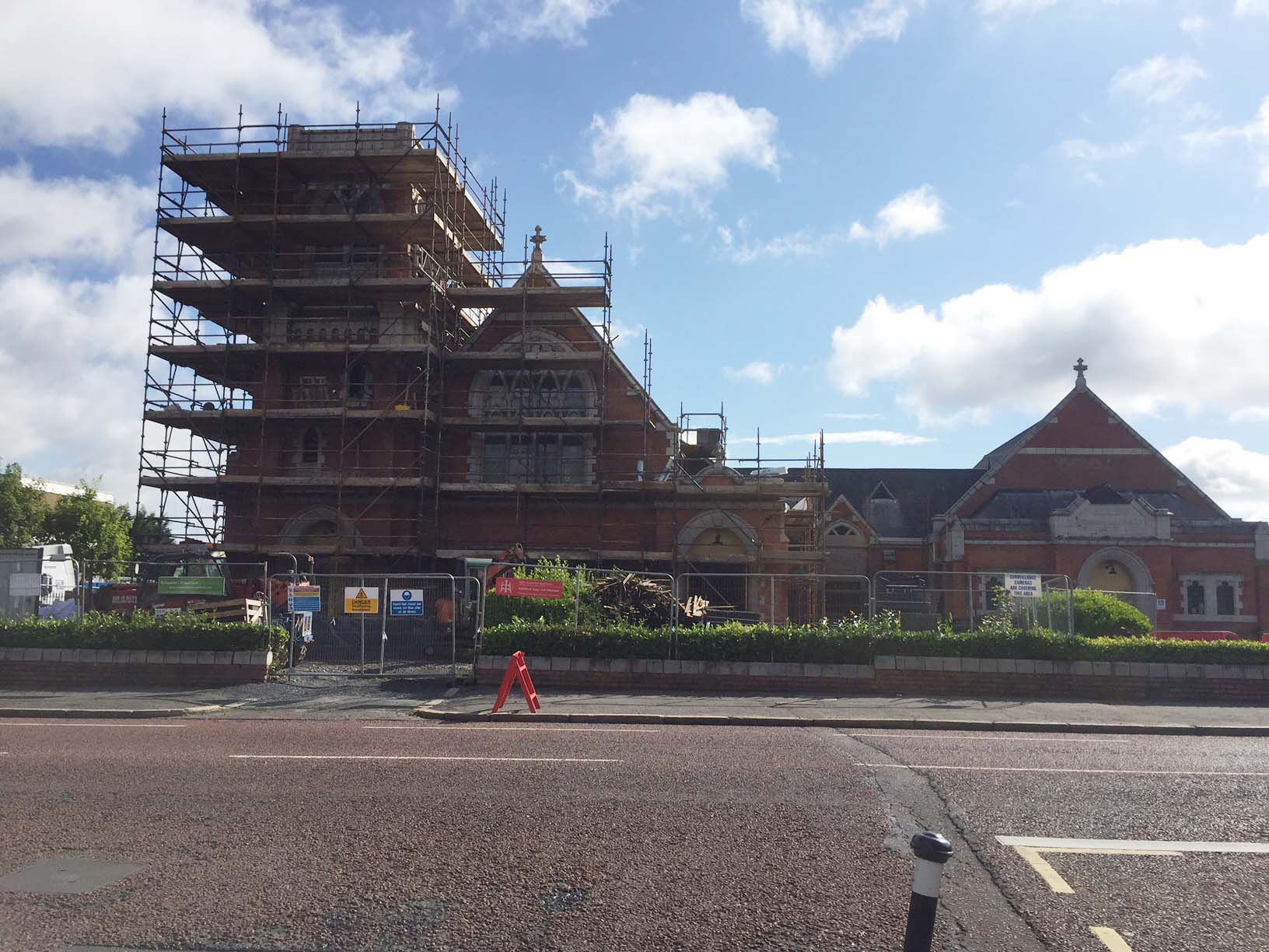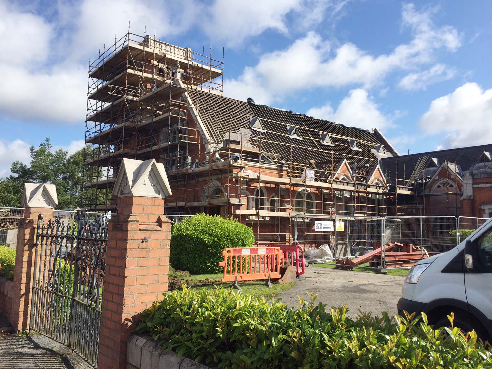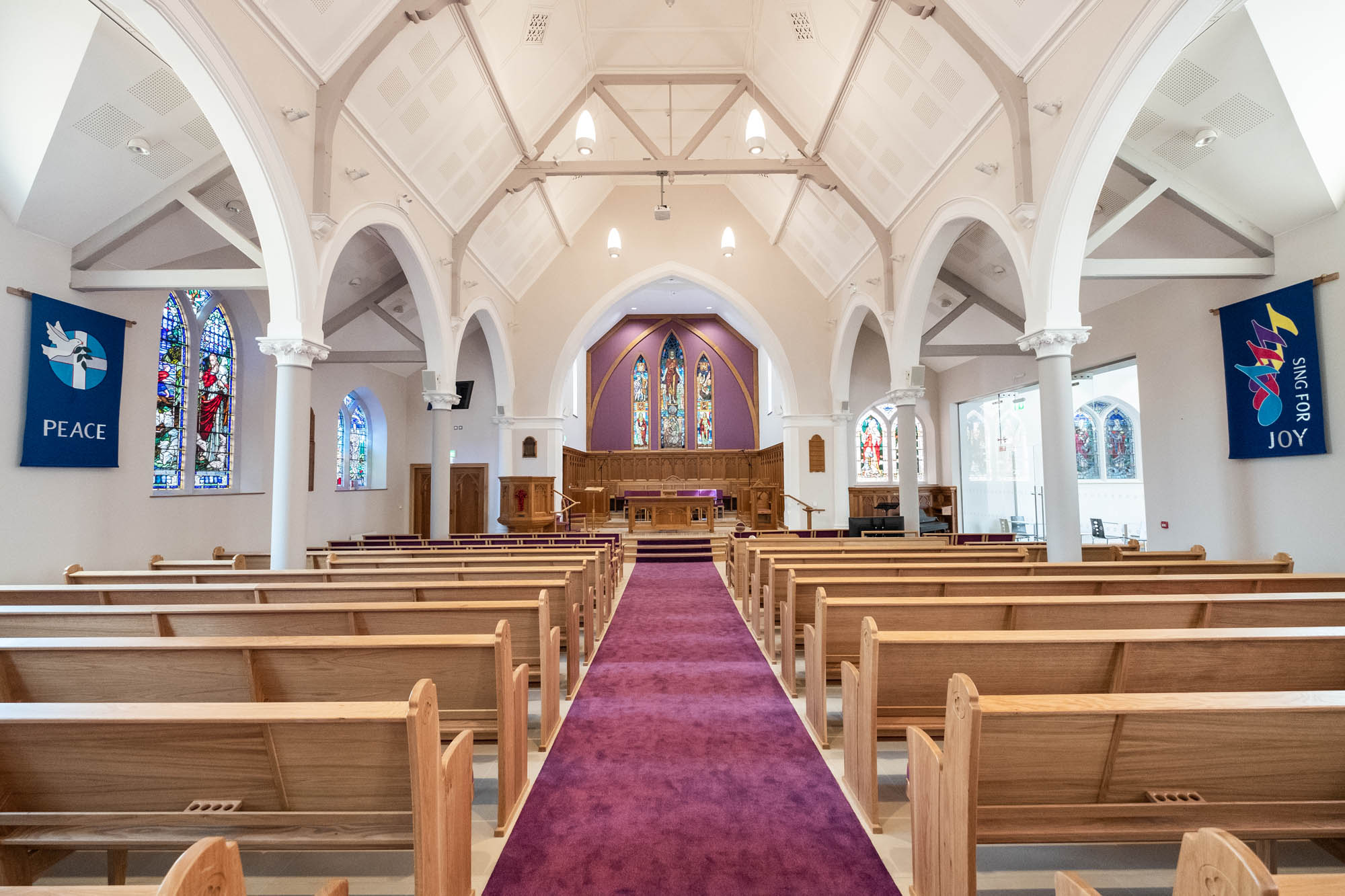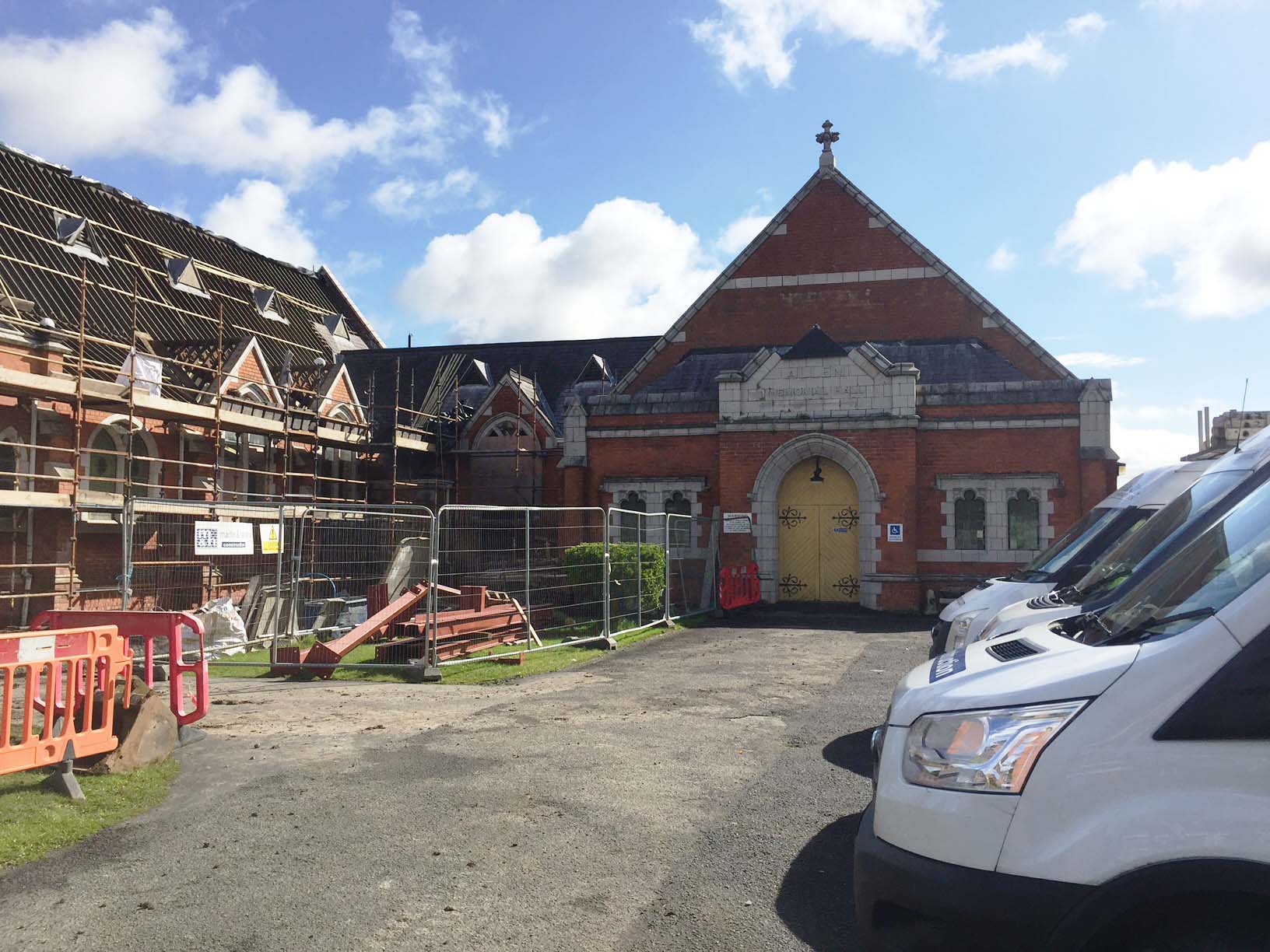 Work on the church building interior is going well. Now that the building has been sealed with the window glass in place in the Welcome Centre and the stained glass windows have been re-installed, including the Millennial Centennial Window, the builders have been able to install the underfloor heating, radiators and electric conduit. The scaffolding is now down to reveal the stunning brickwork. All very exciting now that we can see the end in sight!