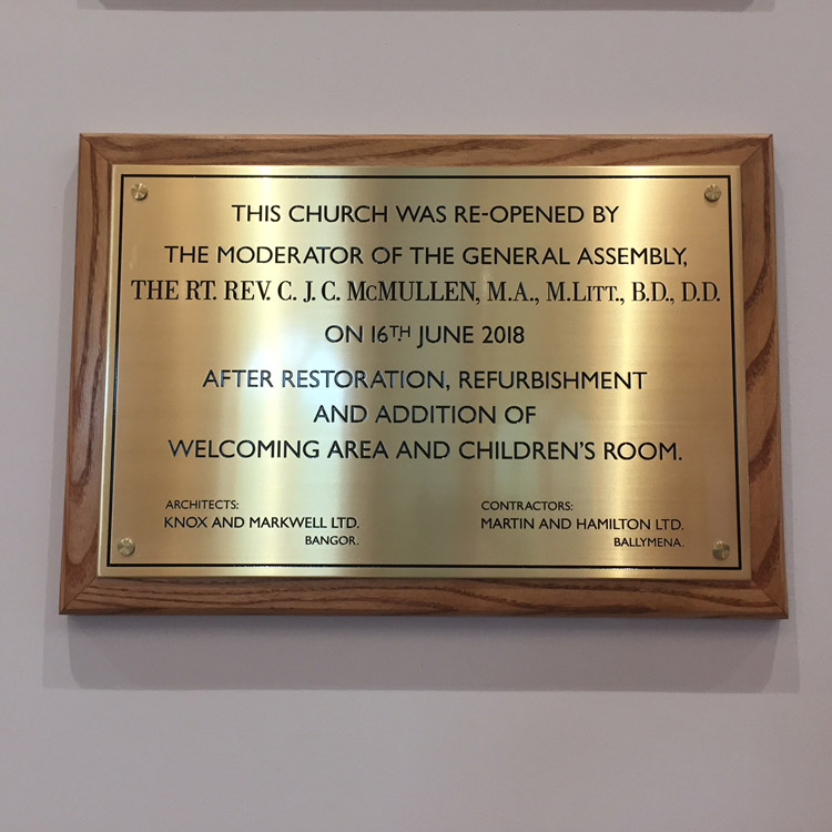The Church was fortunate, as a Listed Building, to receive a generous grant from the National Heritage Memorial Fund, towards the cost of replacing the church roof. This was a significant contribution in the overall renovation scheme for which the Cregagh Congregation expresses its sincere gratitude.